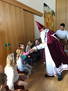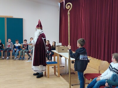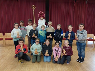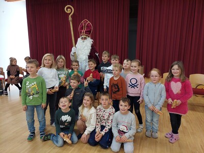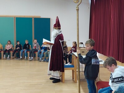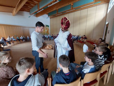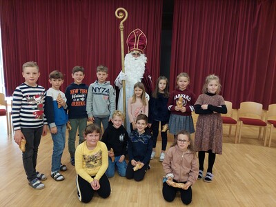 Am 6. Dezember 2022 kam der Nikolaus zu uns in die Schule und überraschte die Kinder mit kleinen Brioche-Nikoläusen. Die Kinder beeindruckten den Nikolaus dabei mit Gedichten, Liedern und Tänzen und machten den Besuch so zu einem ganz Besonderen.