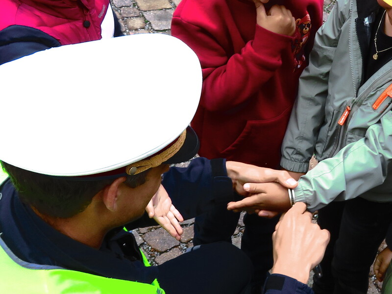 Sie sprachen mit den Schüler*innen über den sicheren Schulweg. Gemeinsam wurde geübt, wie man richtig und sicher die Straße überquert. Die Kinder hatten viel Freude dabei und lernten wichtige Regeln, um sicher zur Schule und wieder nach Hause zu kommen.